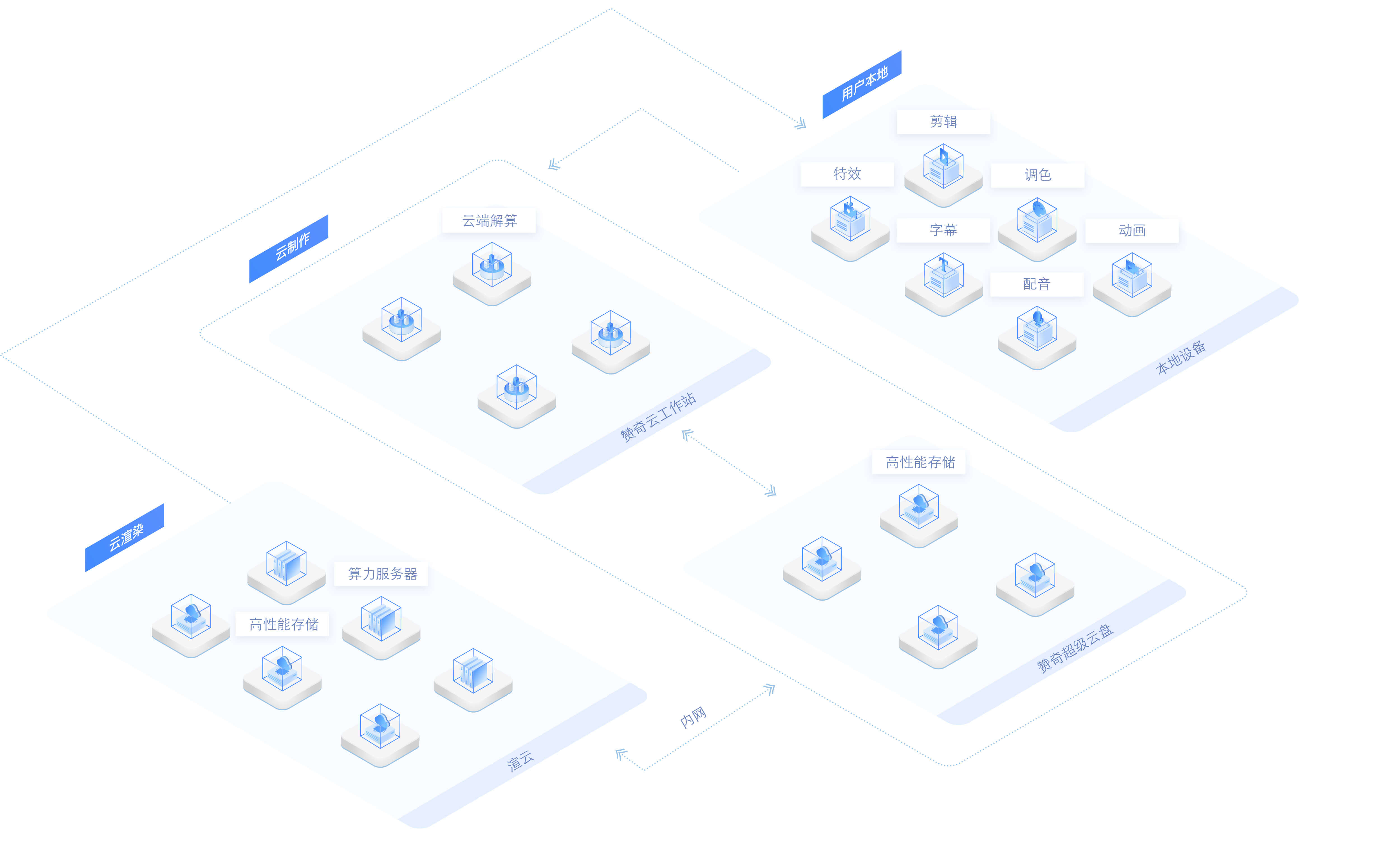 赞奇云电脑以公有云为基座,异架构云桌面技术为基础,提供高安全,零运维的云端解算解决方案。实现了客户本地资源与云端资源充分融合,无缝对接云制作、云渲染。具有海量资源、管理便捷、弹性伸缩、高性价比等优势。