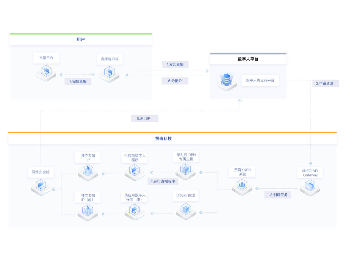 3.赞奇XNEO根据任务信息描述分配GPU资源,运行数字人供应商提供的程序,分配公网独立带宽IP。